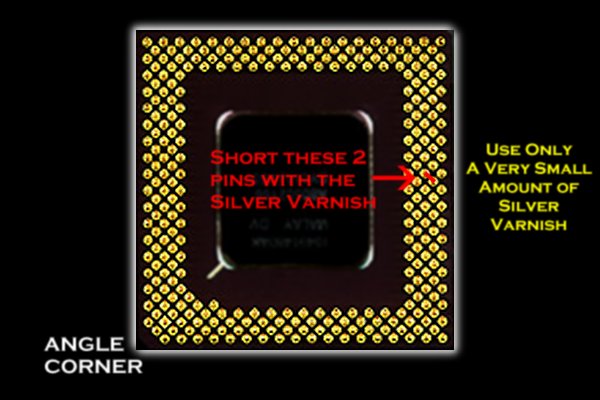 La modifica si può effettuare saldando alla scheda madre un altro jumper oppure collegando direttamente 2 piedini del processore ottenendo così una base fissa di 4X nel moltiplicatore. Mi occuperò di quest'ultimo metodo che ho sperimentato direttamente e che consiglio a tutti essendo molto immediato.